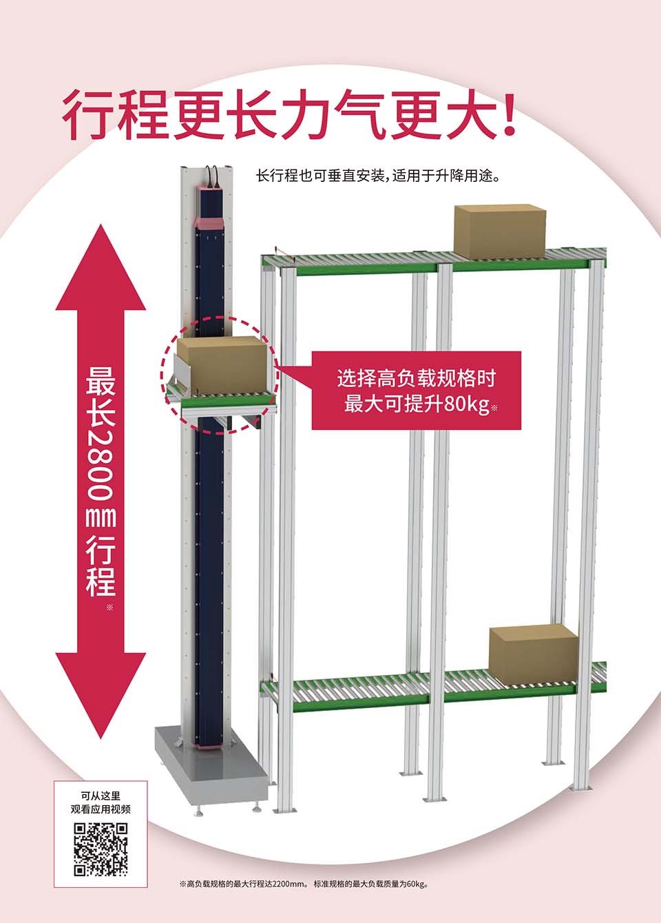 搭載中間支持機構的機型,即使長行程也能實現高速動作。