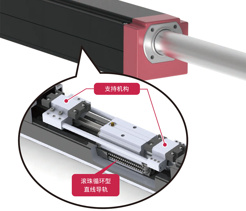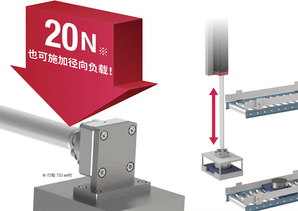 以4列滾珠分散負載,即使在最長行程下也能承受最大10N的拉桿末端動態允許徑向負載。