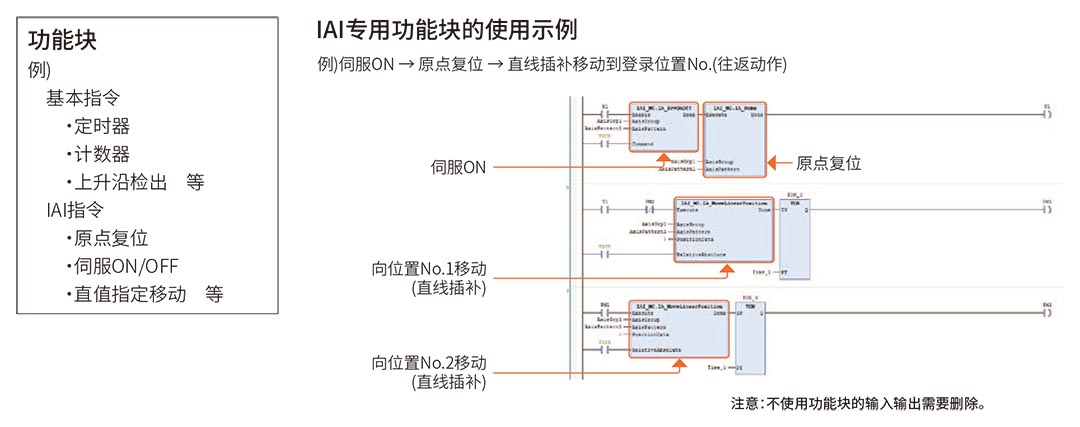 備有一般的基本指令及IAI獨創指令的功能塊。