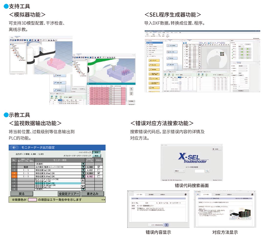 ?根據內部電容器的溫度和運行時間預測電容器壽命的功能 ?監視當前位置、馬達電流值、維護信息的功能 (維護信息…移動次數及運行距離等) |